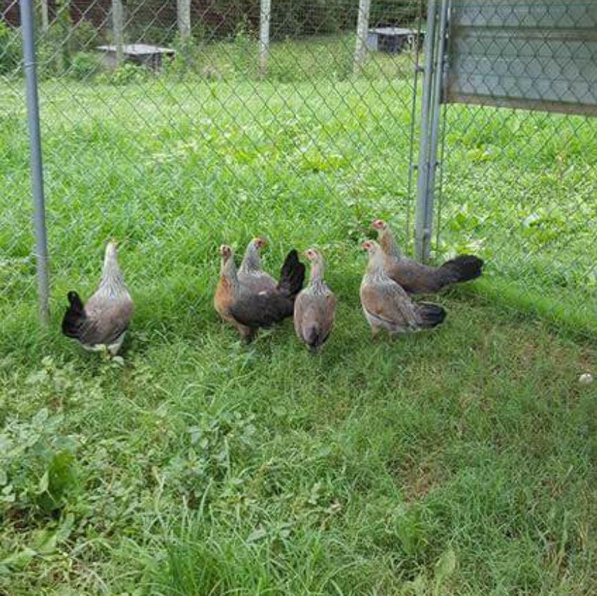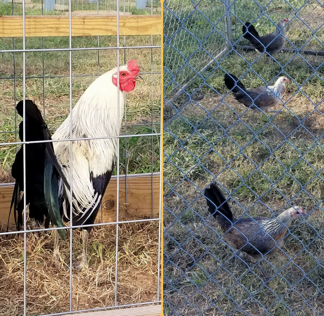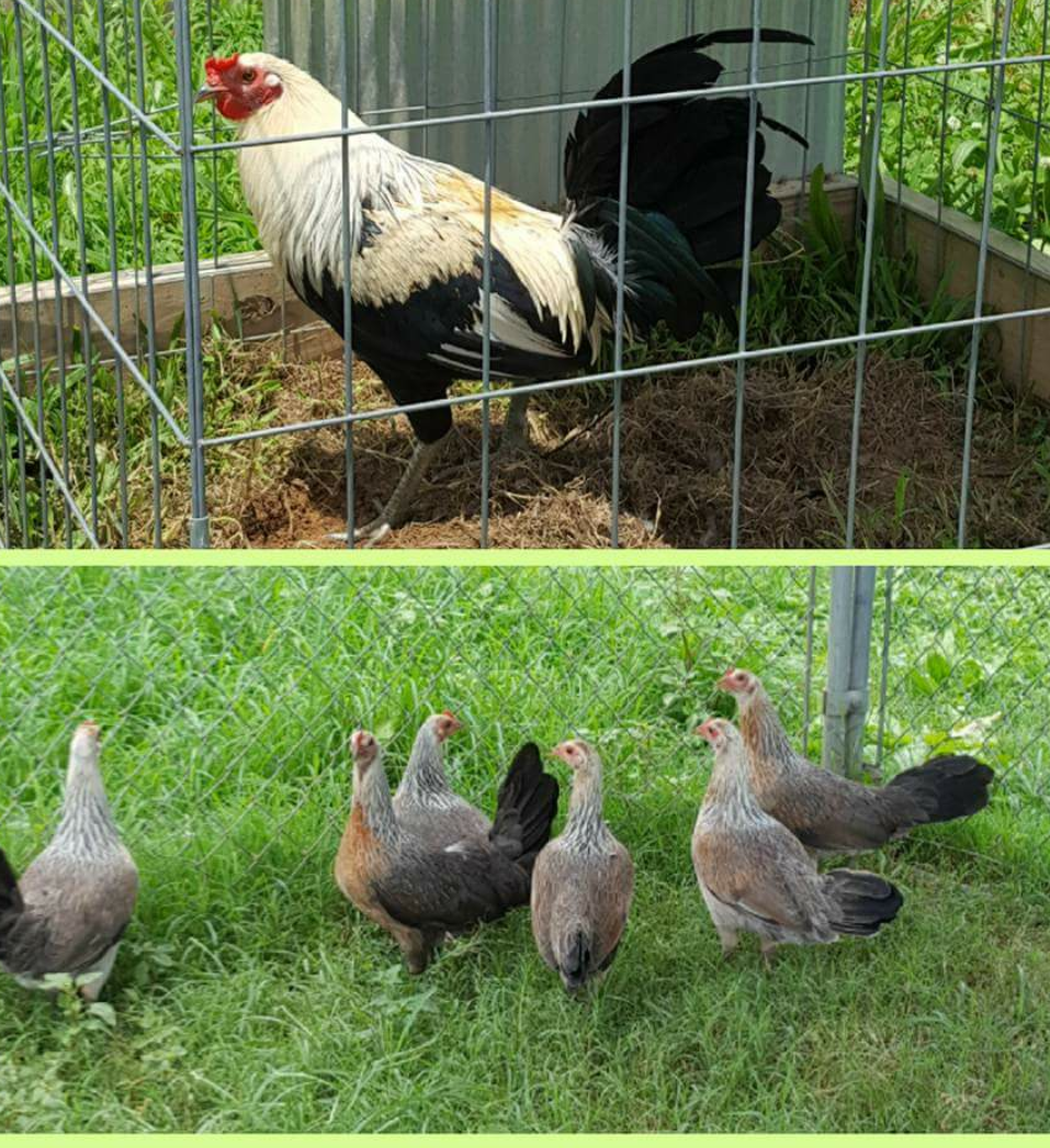 Our Clemmons Grey fowl are a beautiful white hackle and saddle feathered bird with a black chest. They are green to blue legged and come pea comb and straight. My grandfather acquired these birds in the 70s.