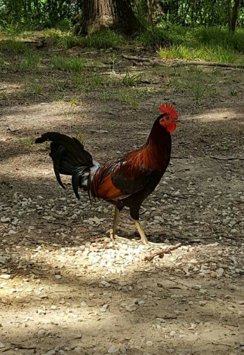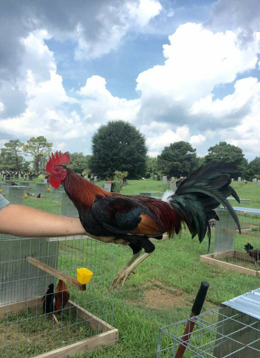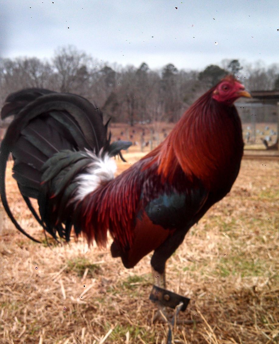 Our Doc Robinson fowl acquired from Doc himself are dark red fowl with black chest and tail. They also have green legs. They come straight and pen comb. They are also known to be powerful fowl.
